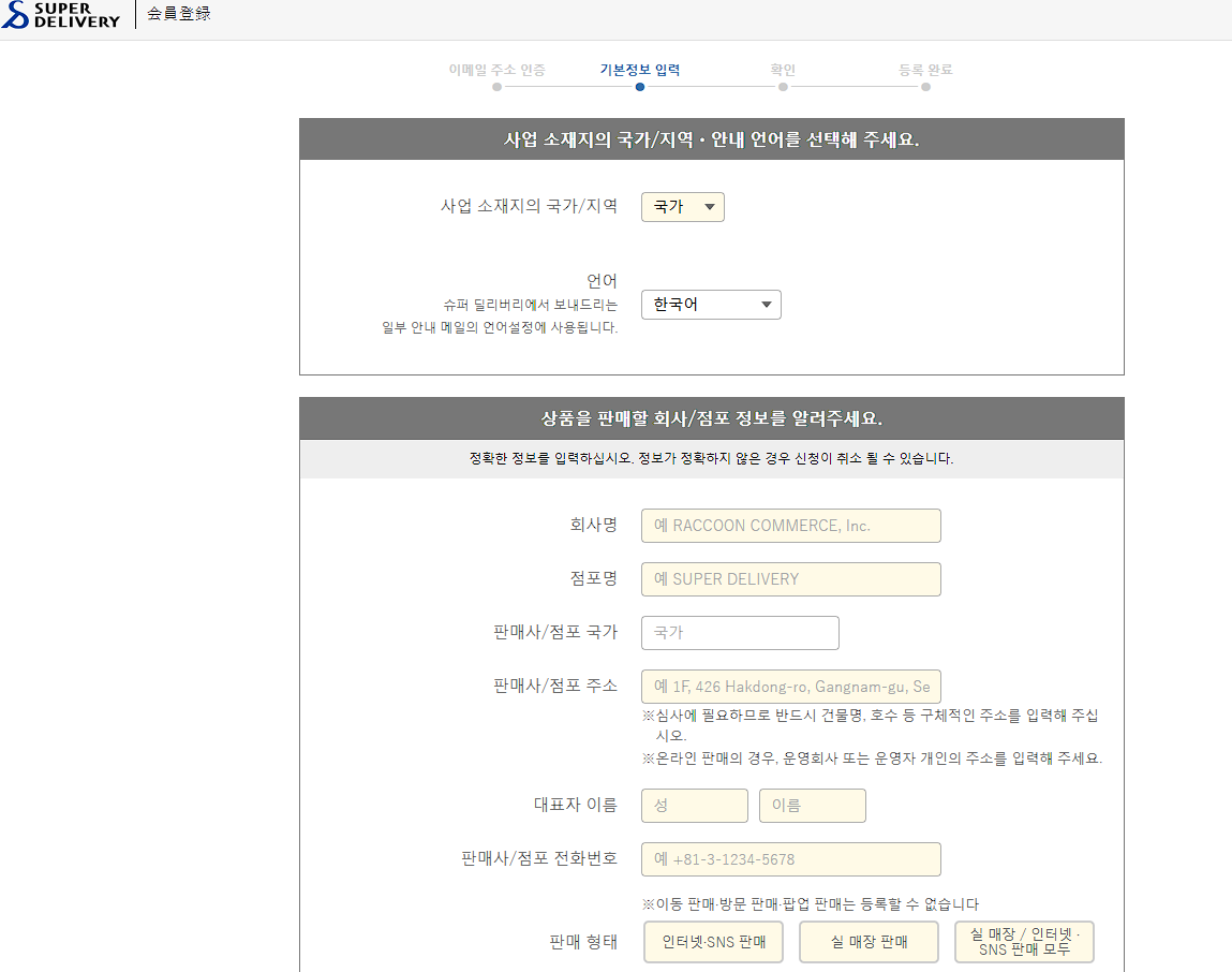 내 사업자를 참고해서 적고, 주소는 일본의 배대지가 필요하다고 하여 자주 사용하는 배대지 주소를 넣었다.